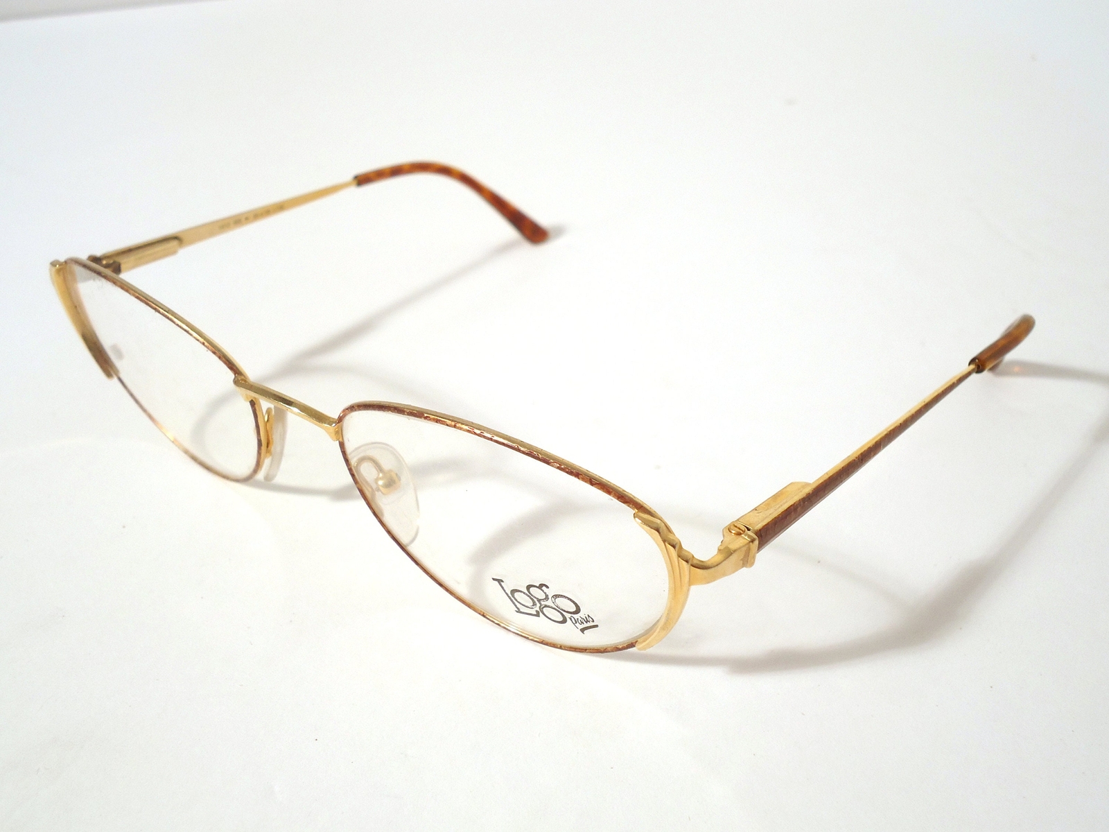 как выглядит Logo Paris France Eyeglasses Frames Gold Amber 1412 55-19 135 Lot 996 фото