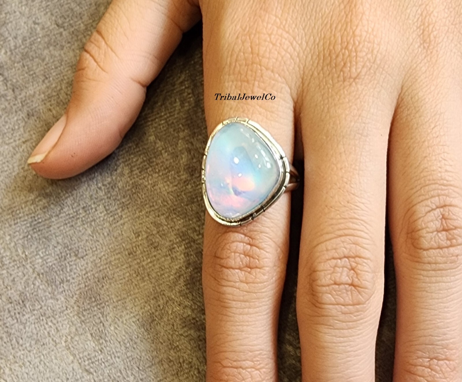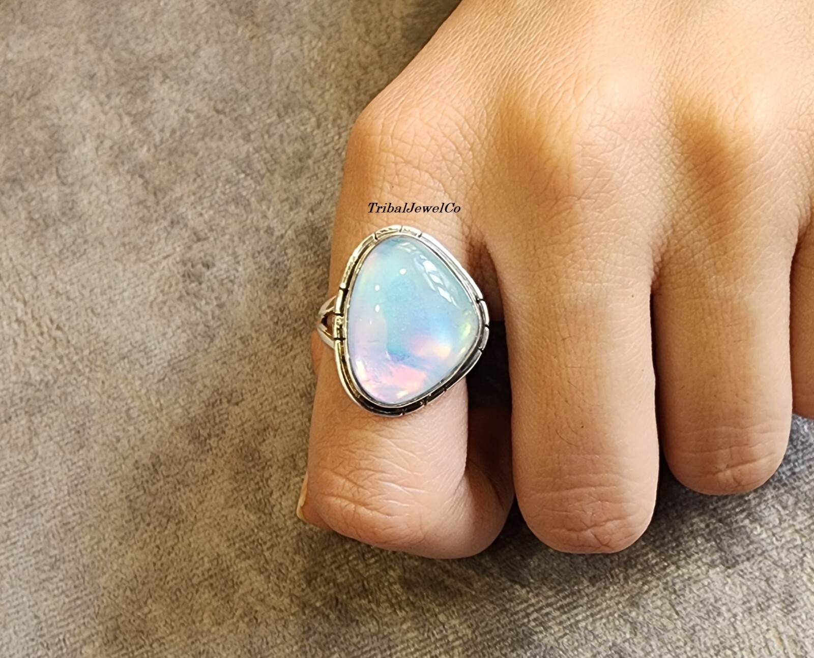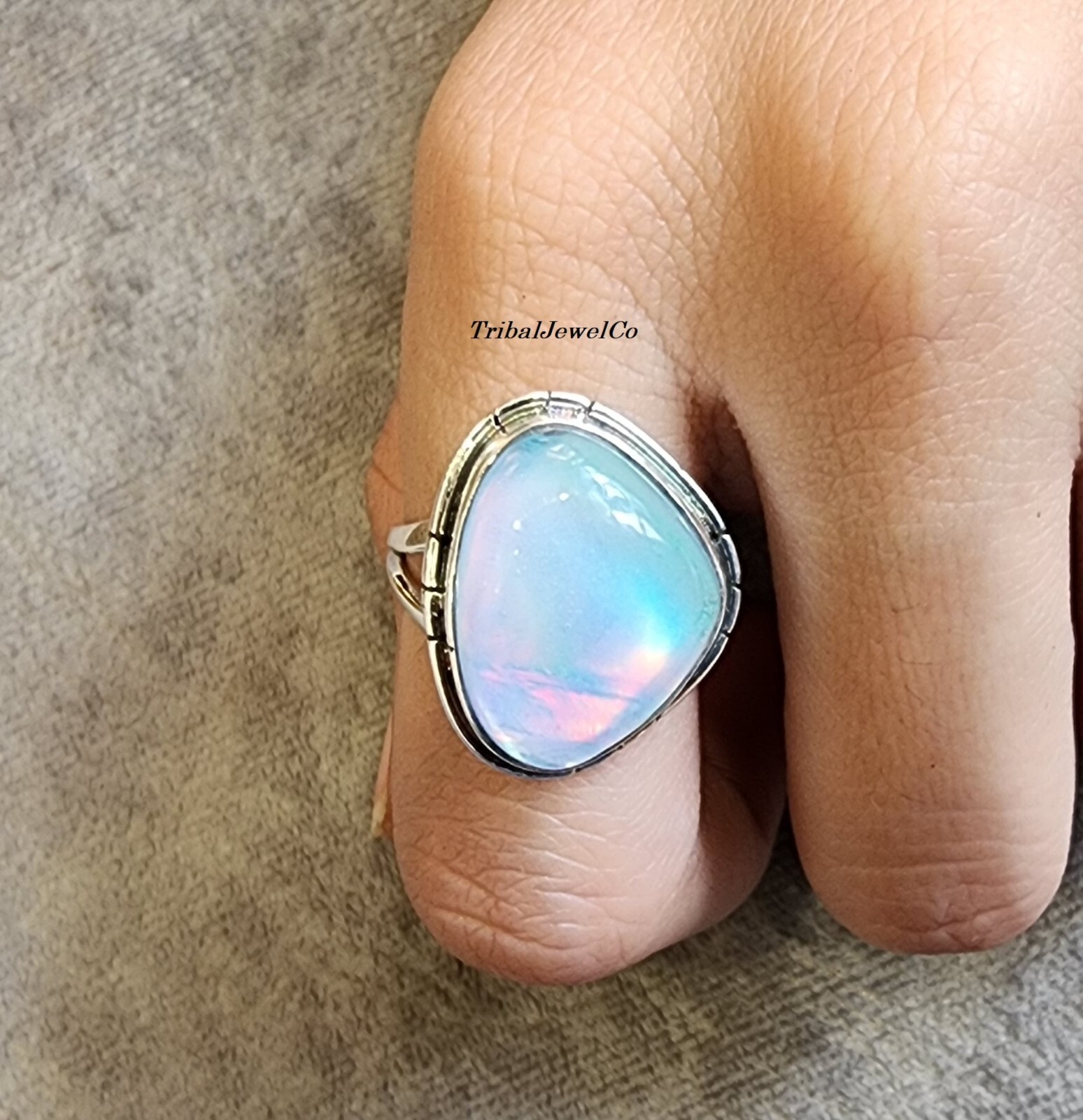 925 Sterling Silver Aurora Opal Ring Handmade Ring Women Ring Wedding Ring Gift