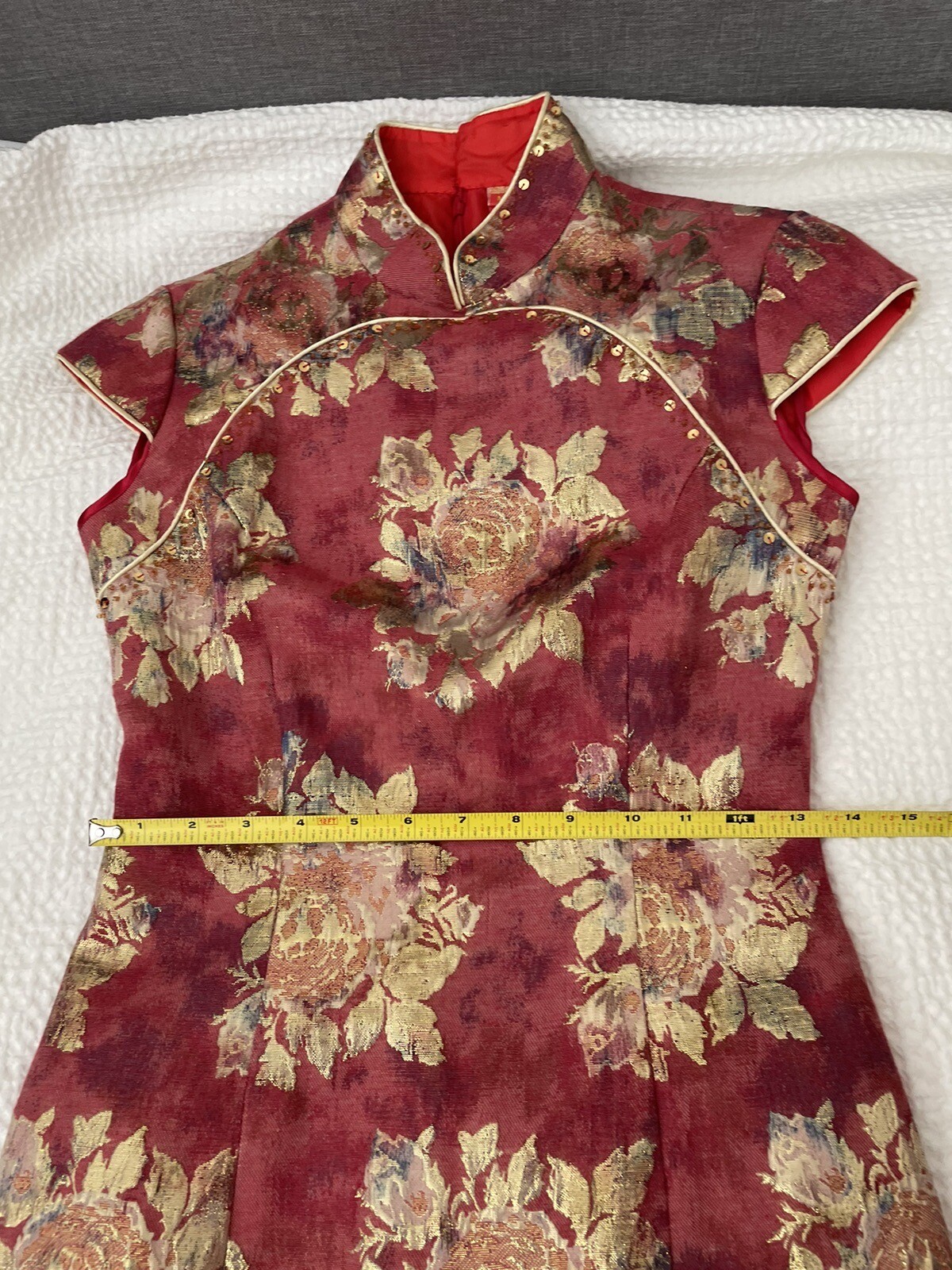 Cheongsam Qipao XS Rose Chinese Dress Small Brocade Floral Extra Small 0 2 4