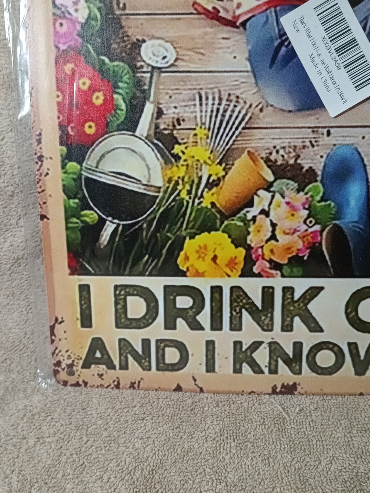 Tin Metal Garden Sign Thats What I Do I Garden I Drink I Know Things 12X16