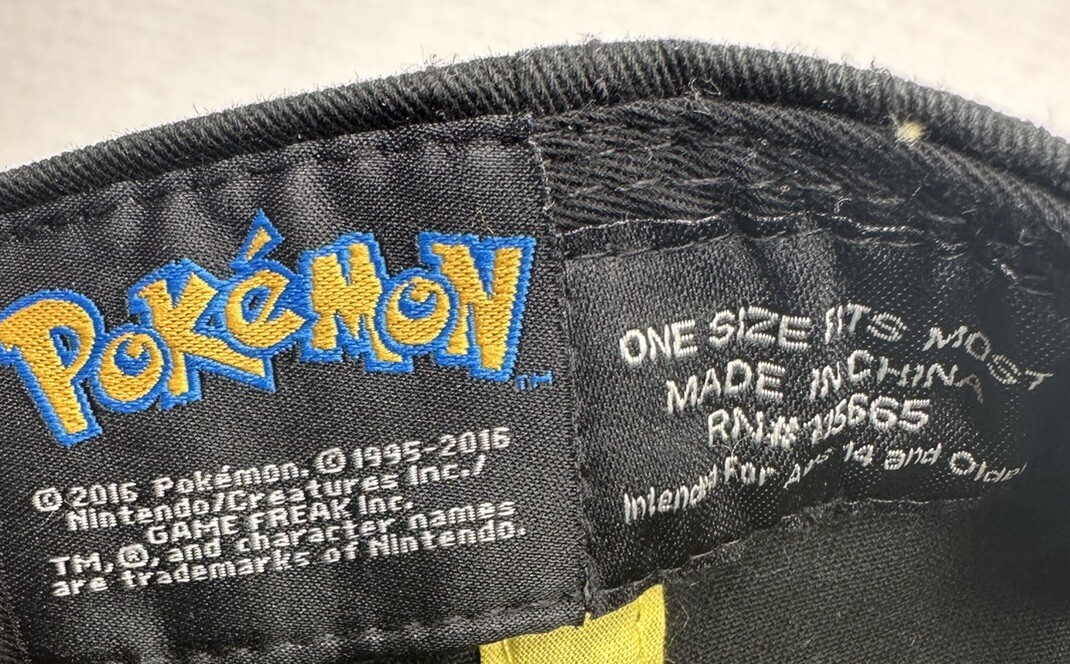 Pok mon Pikachu 2016 Nintendo Game Black Yellow Snapback OSFM Hat Embroidered