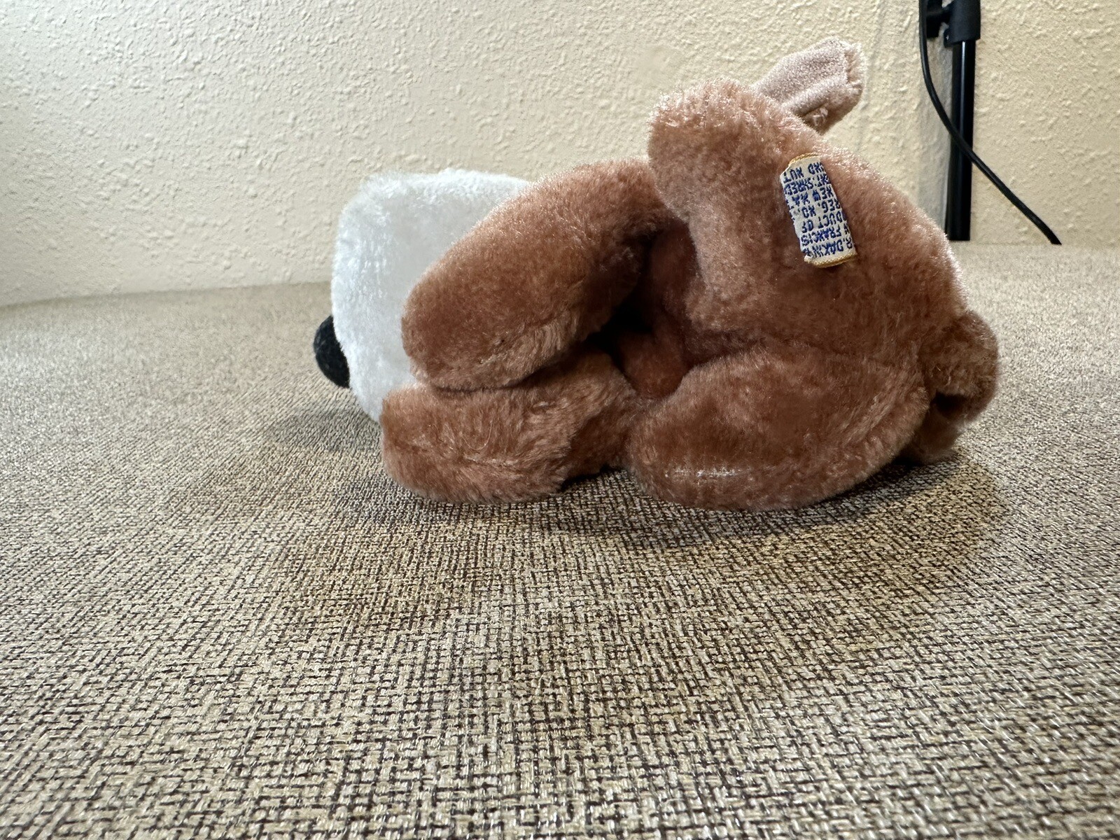 как выглядит Vintage Dakin Drooper Dog Green Eye Brown White Plush Nutshell Stuffed 1976 6-7 фото