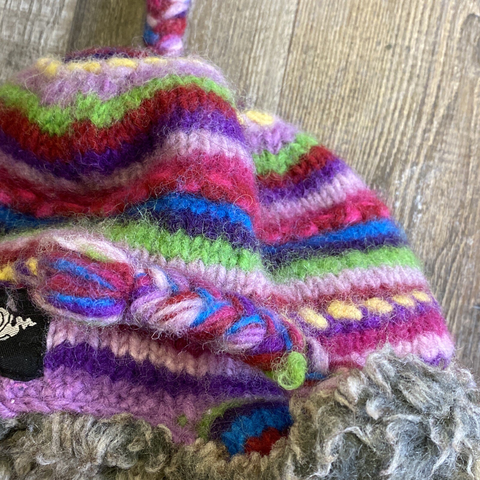 Everest Kids Hat Ear Flaps Wool Lined Knit Rainbow Stripped One Size Faux Fur