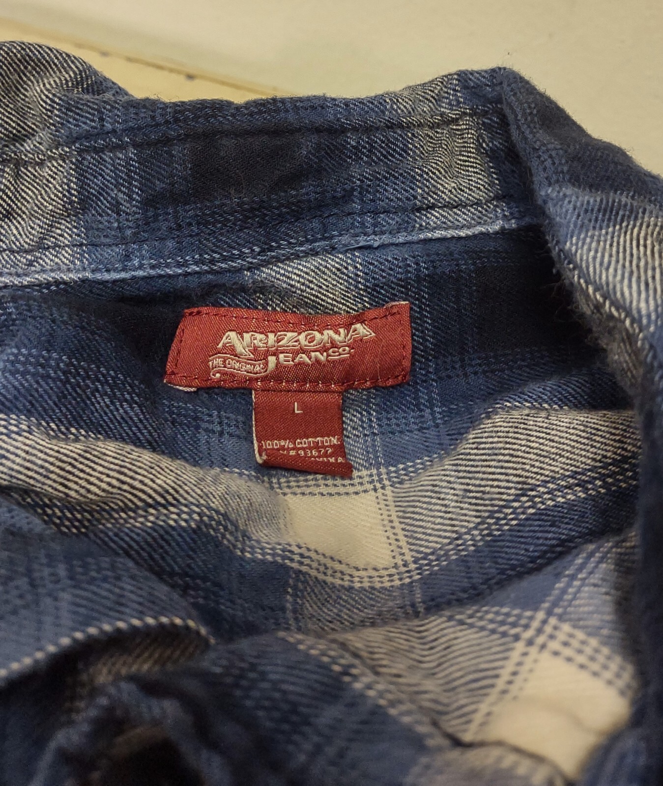 Arizona Jean Co Blue Plaid Flannel Long Sleeve Button Down Shirt Men's Size L