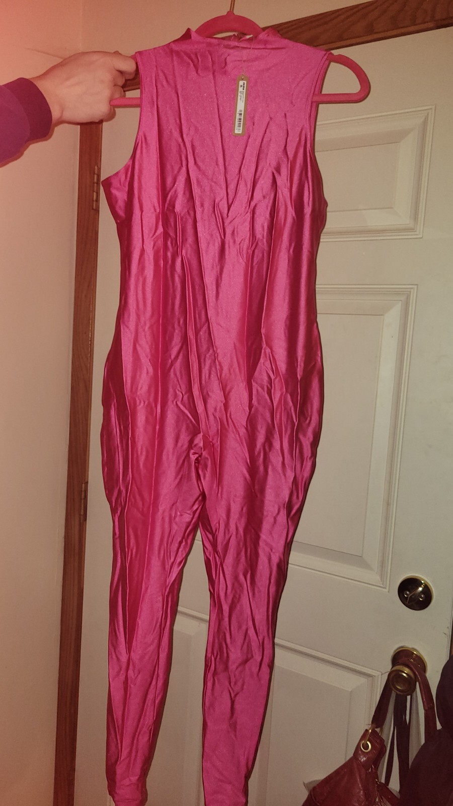 как выглядит SKIMS SHINE JERSEY MOCK NECK SLEEVELESS CATSUIT HOT PINK XL BNWT фото