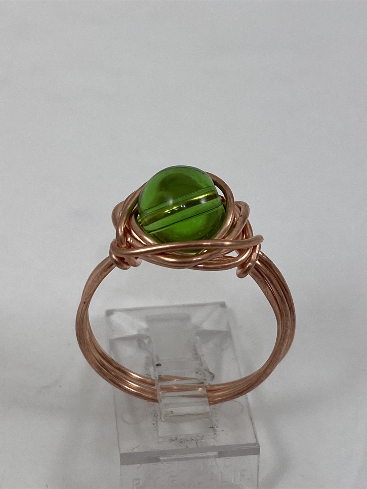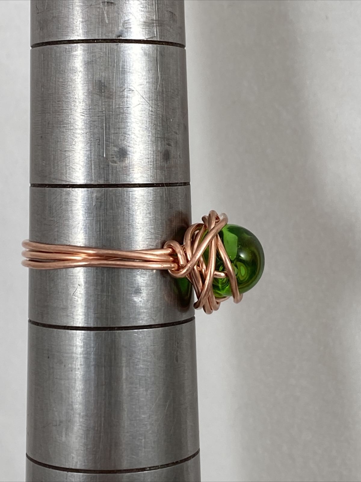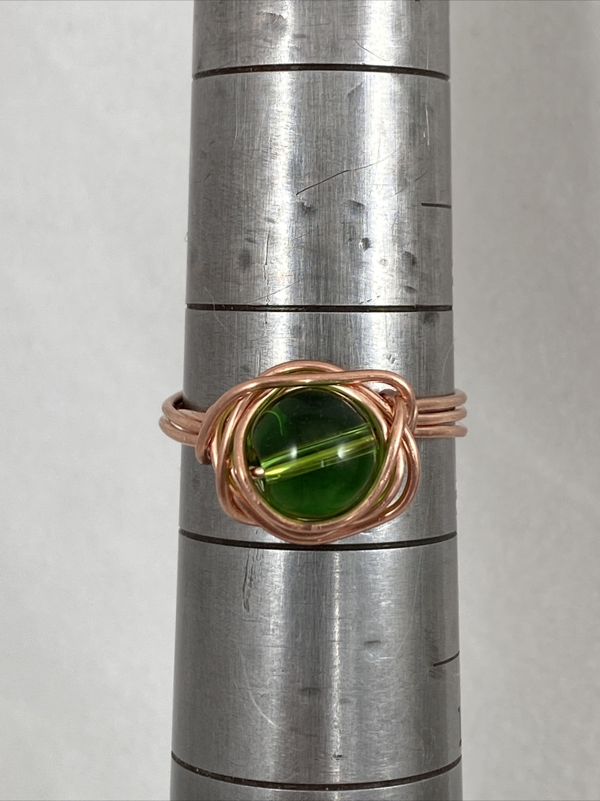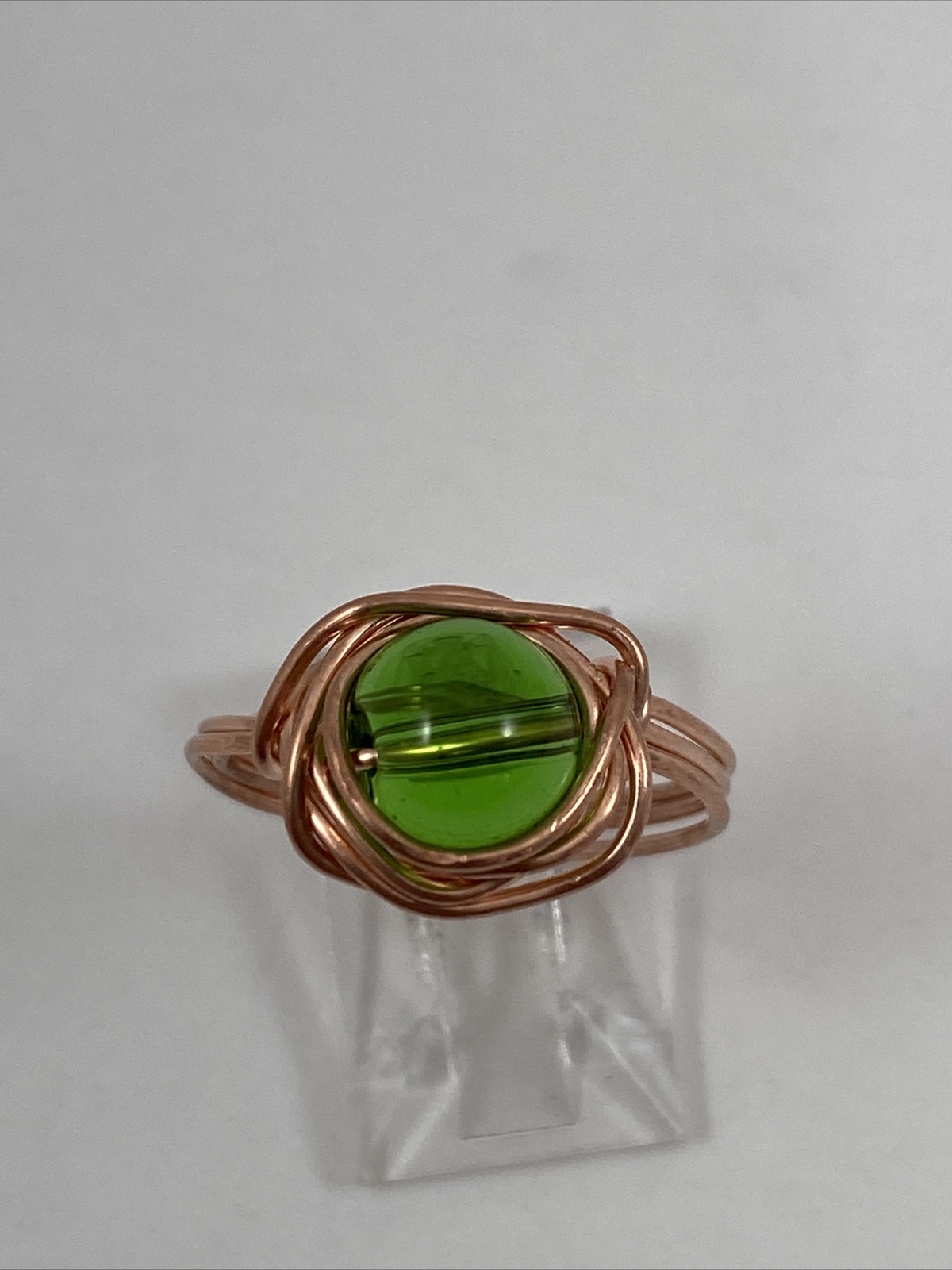 как выглядит Handmade Copper Wire Wrap Green Glass Bead Ring Size 8 1/2. 148 фото