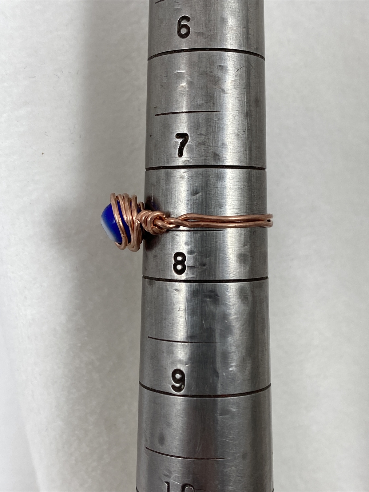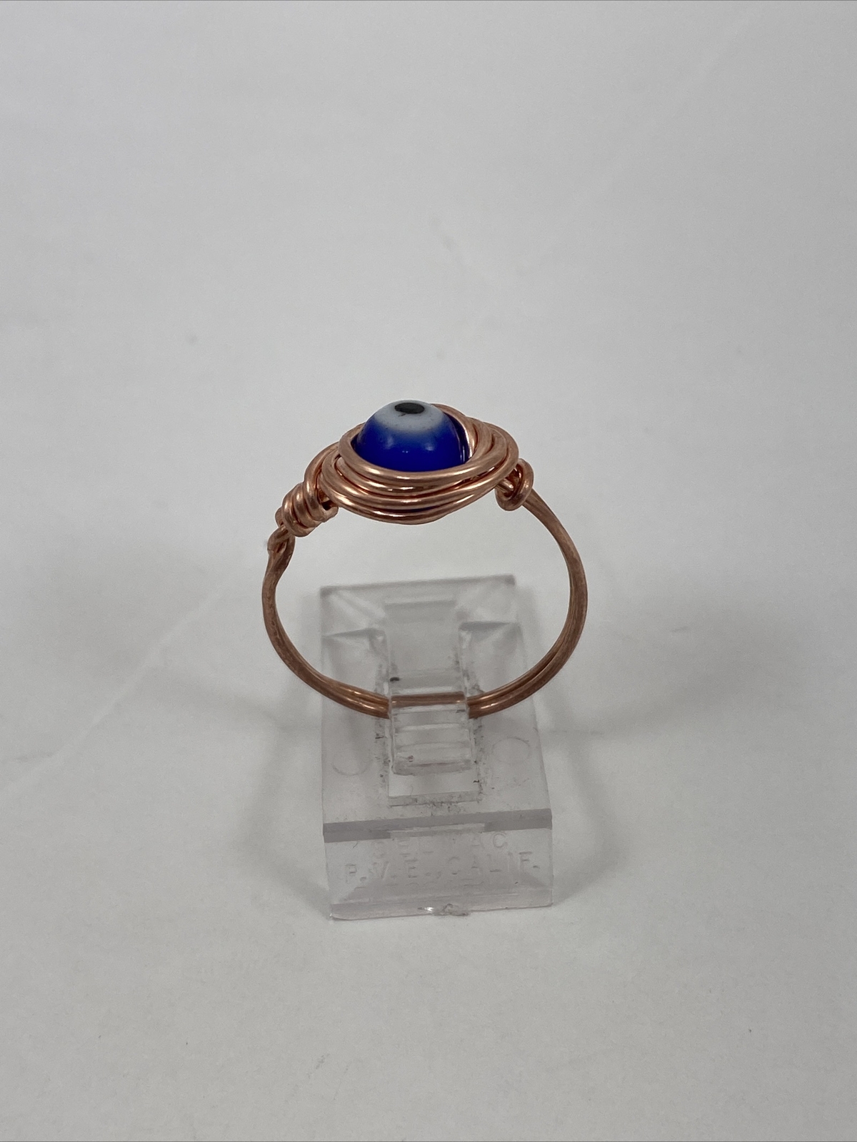 Handmade Copper Wire Wrap Evil Eye Glass Bead Ring Size 7 1/2 108
