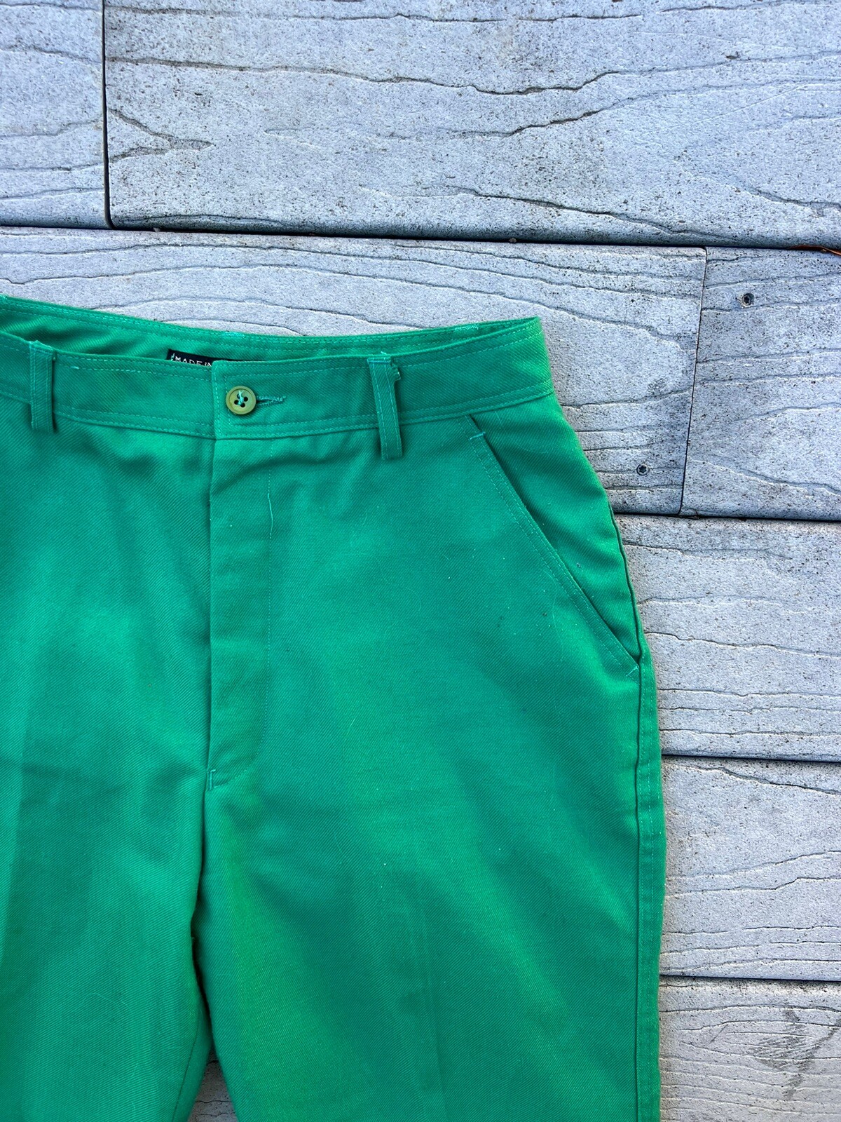 Vintage 1970s Bright Green Bell Bottom Jeans With Pockets Size XS