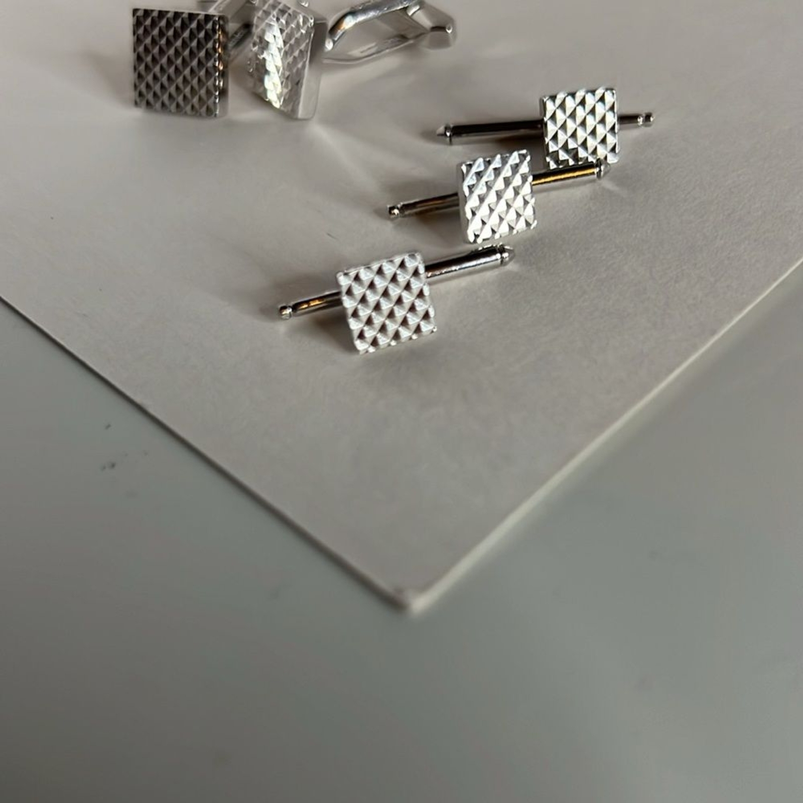 Cuff links and 3 shirt studs, Made in Germany, Silver.