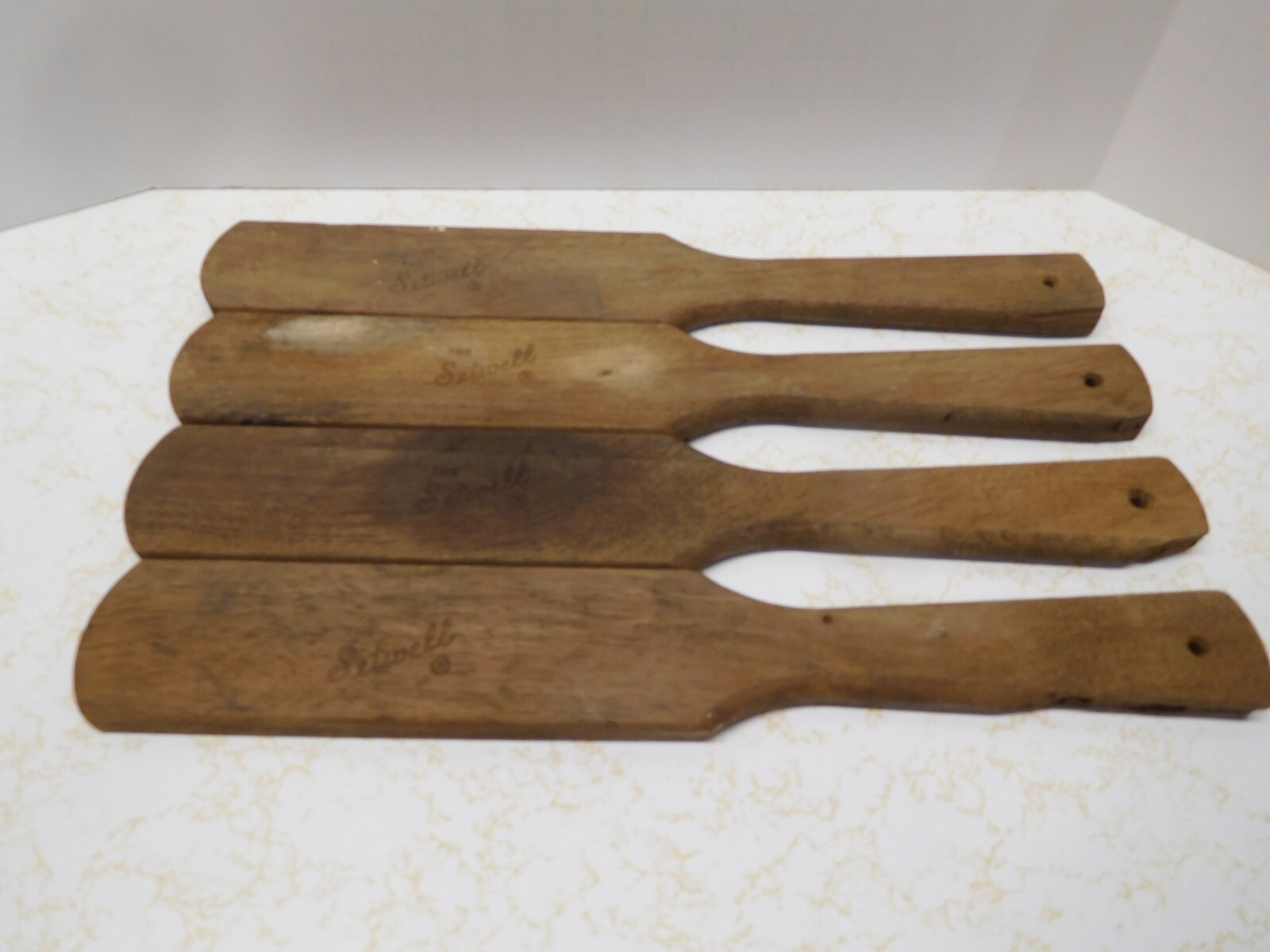 4 Vintage Cleaning Paddles made from Setwell Wood Clothes Hangers
