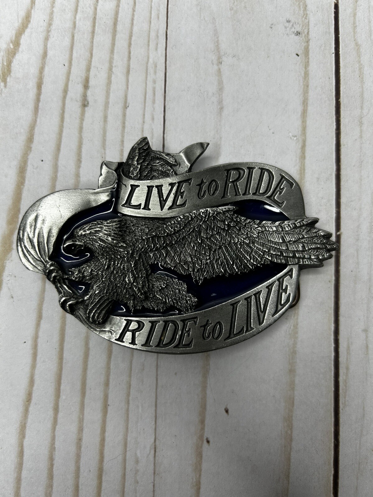 как выглядит Vintage Biker Belt Buckle Live To Ride Screaming Eagle Banner 1981 Bergamot USA фото
