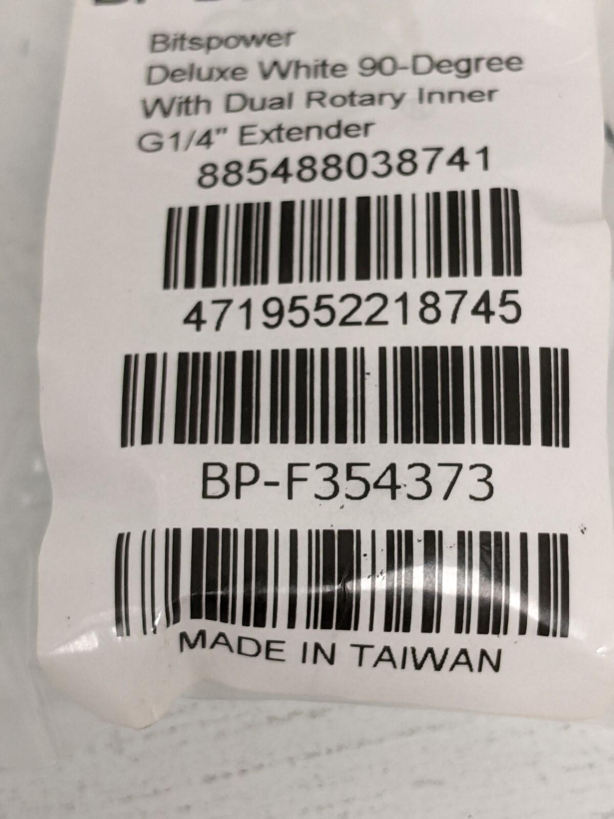 Bitspower Deluxe White 90-Degree with Dual Rotary Inner G1/4 Extender - New