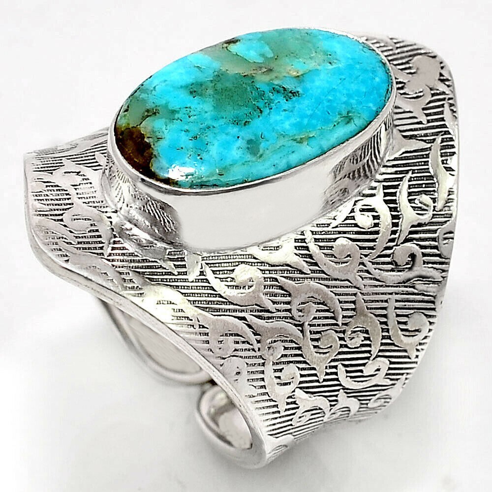 New Blue Arizona Mohave Turquoise 925 Sterling Silver Ring - Size 8.5 Adjustable