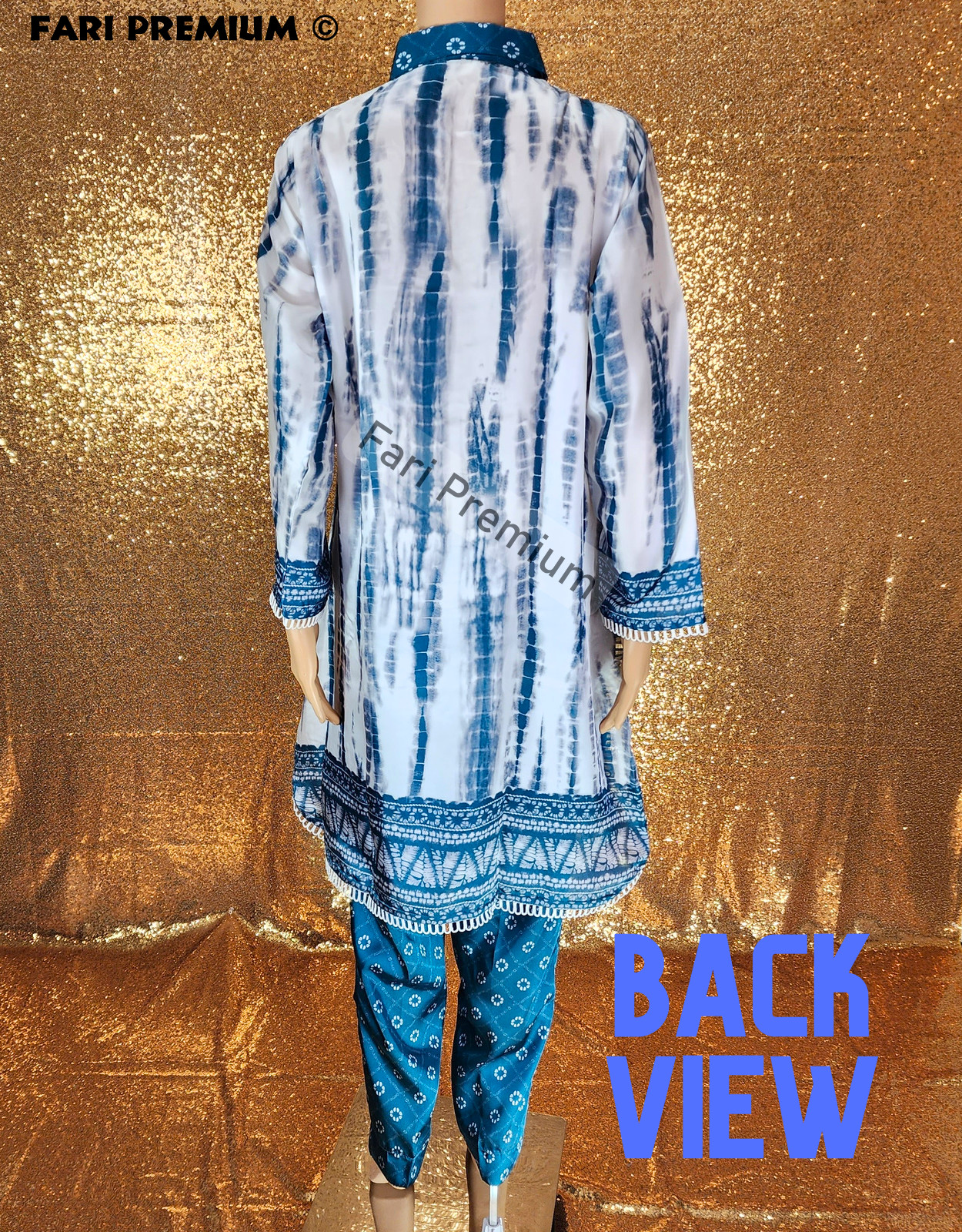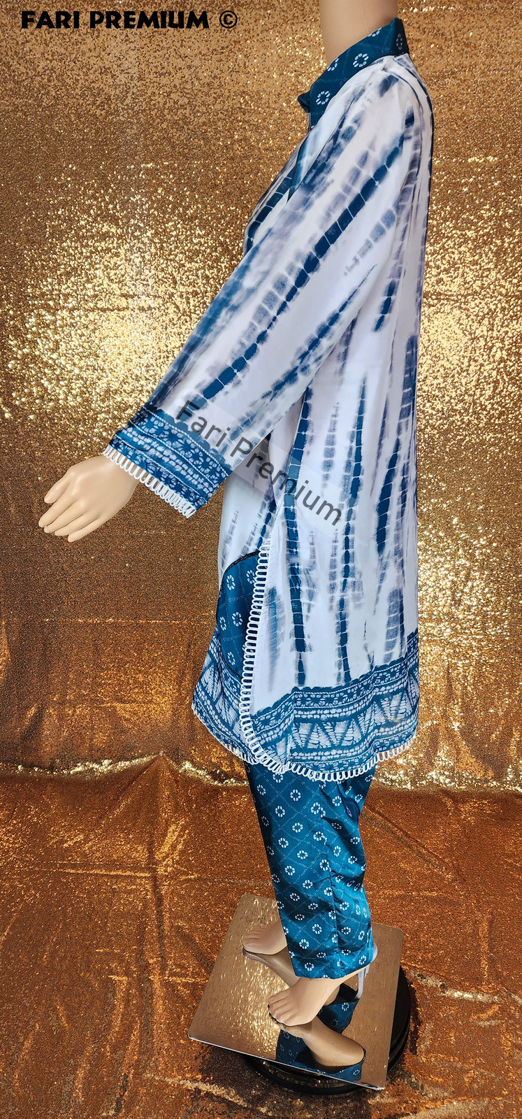 Tawakkal 2-PC Embellished Silk Tie Dye Shalwar Kameez Pakistani/Indian LARGE 46