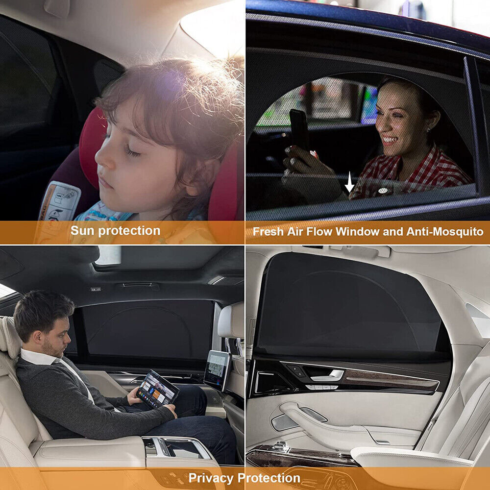 • 2PCS Car Side Window Sun Shade Mesh Screen Cover Bug Net UV Block Zipper Visor