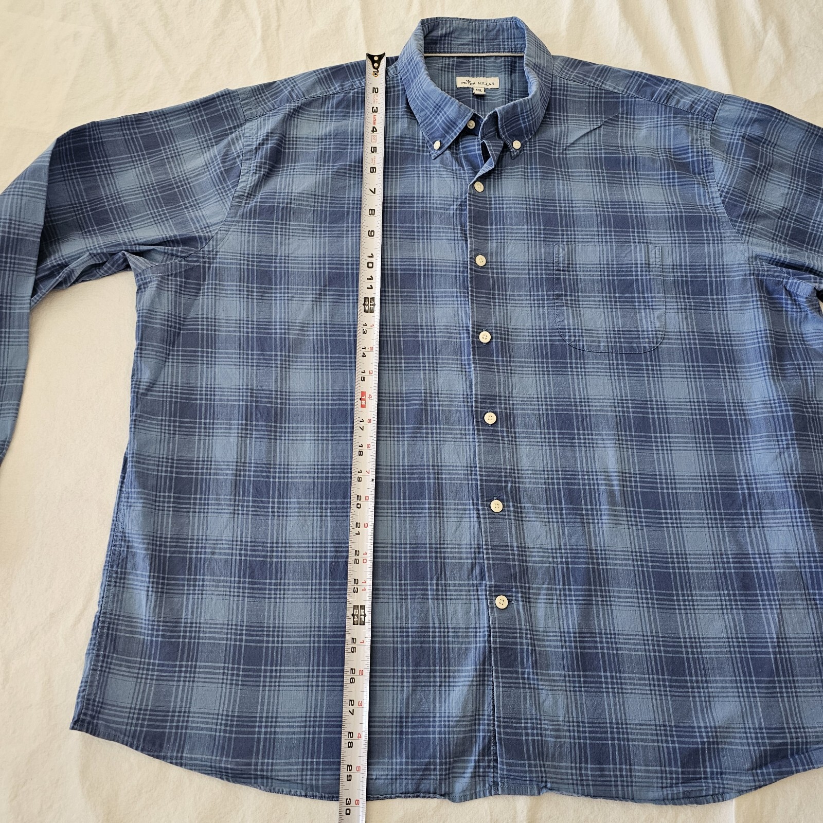 как выглядит Peter Millar Button Down Dress Shirt Mens Size 2XL Blue Plaid фото