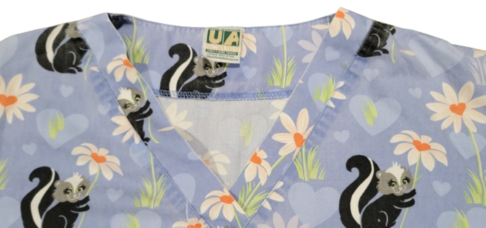 UA Cute Skunk Flowers Purple Cats Size Large Pockets