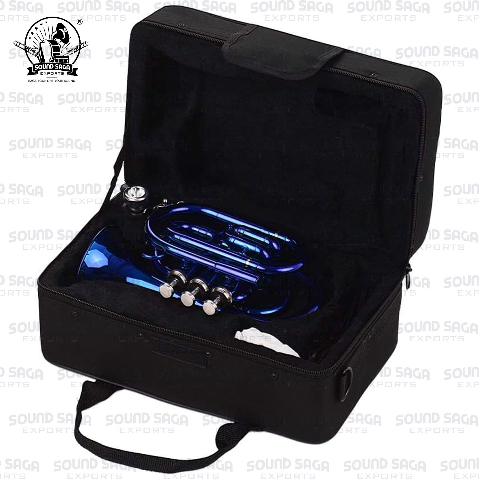 SOUND SAGA Pocket Trumpet With All Accessories Including Mouthpiece Case.