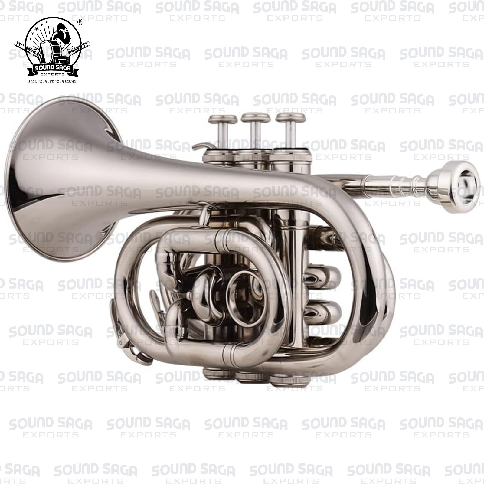 SOUND SAGA Pocket Trumpet With All Accessories Including Mouthpiece Case.