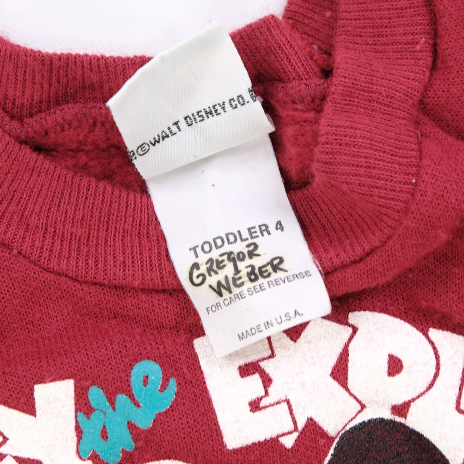 Rare VTG JOG TOGS Disney Mickey Mouse The Explorer Sweatshirt 90s Red Toddler 4T