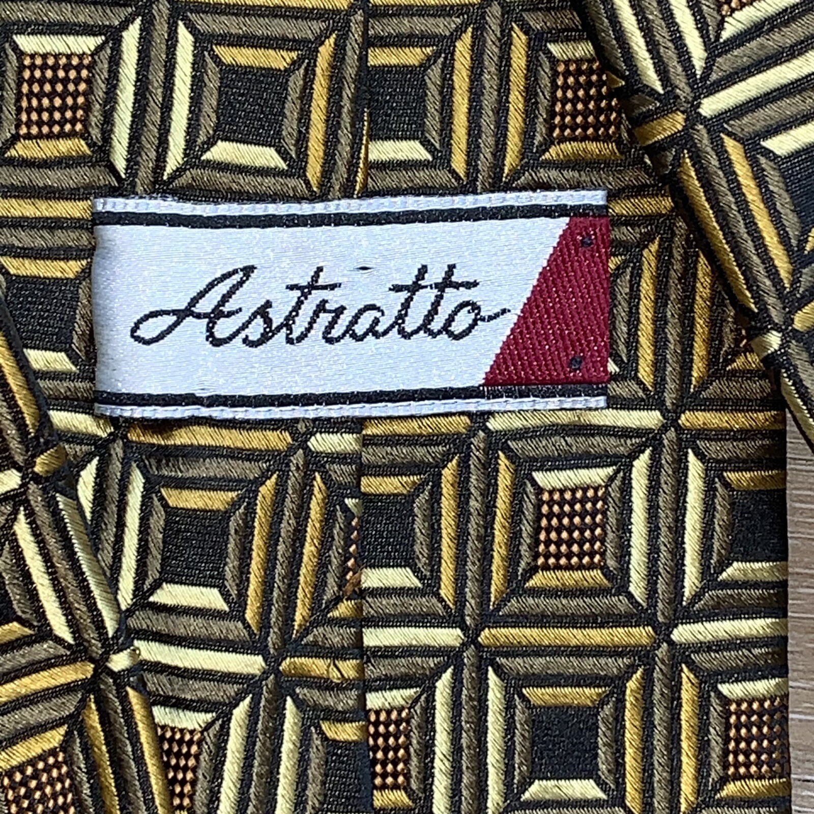 ASTRATTO Tie Silk Geometric Woven Gold Made In USA 58 L 4 W