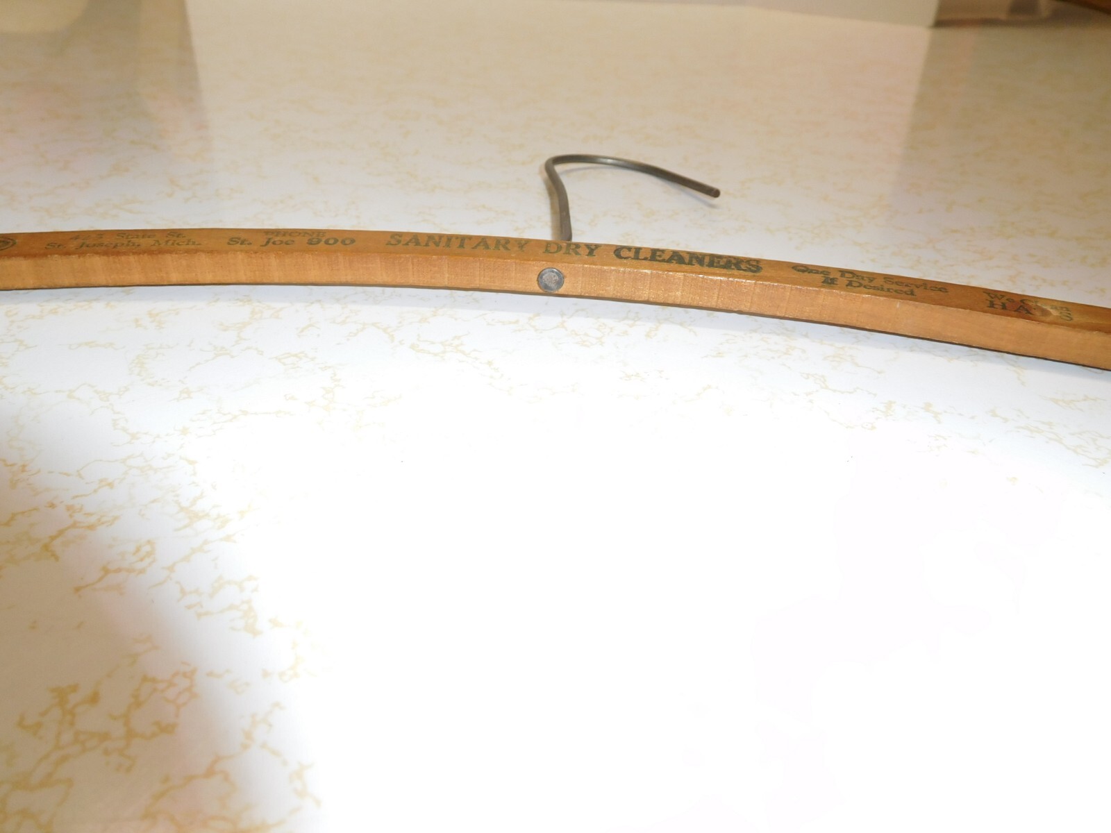 как выглядит Antique Sanitary Cleaners St. Joseph, MI ph. 900 Wood Clothes Hanger Advertising фото