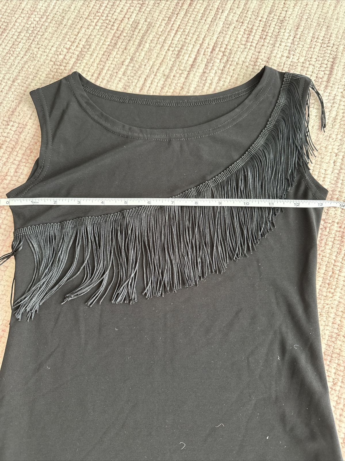 New Girls Fringe Black Ballroom Tango Outfit Latin Dance Size 8 Years