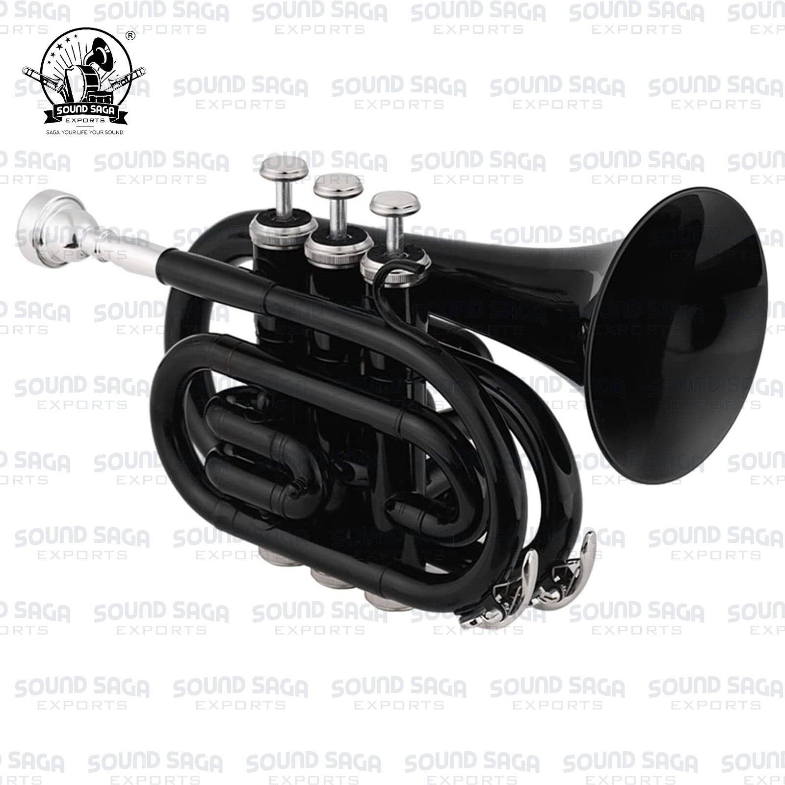 SOUND SAGA Pocket Trumpet With All Accessories Including Mouthpiece Case.