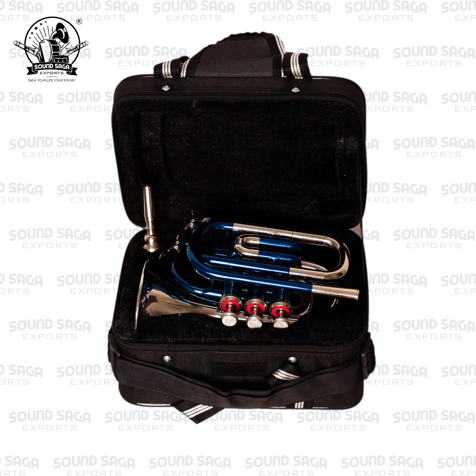 SOUND SAGA Pocket Trumpet With All Accessories Including Mouthpiece Case.