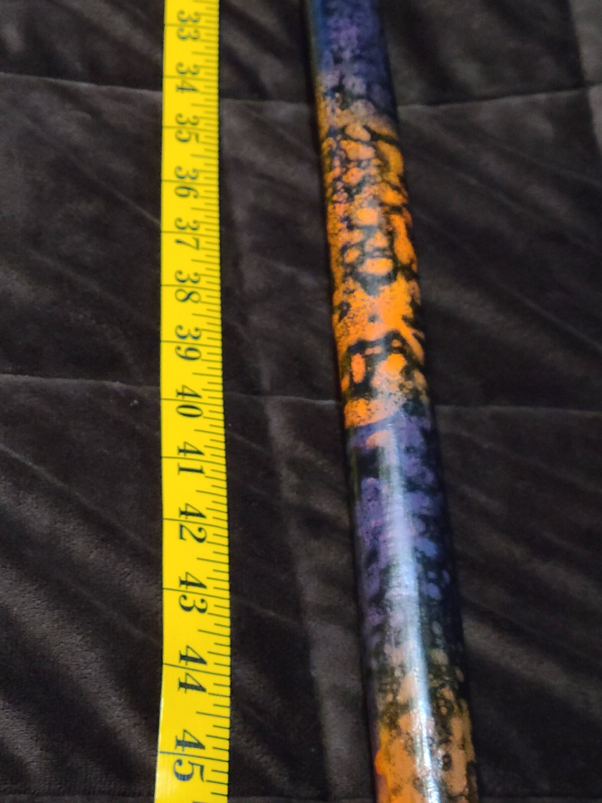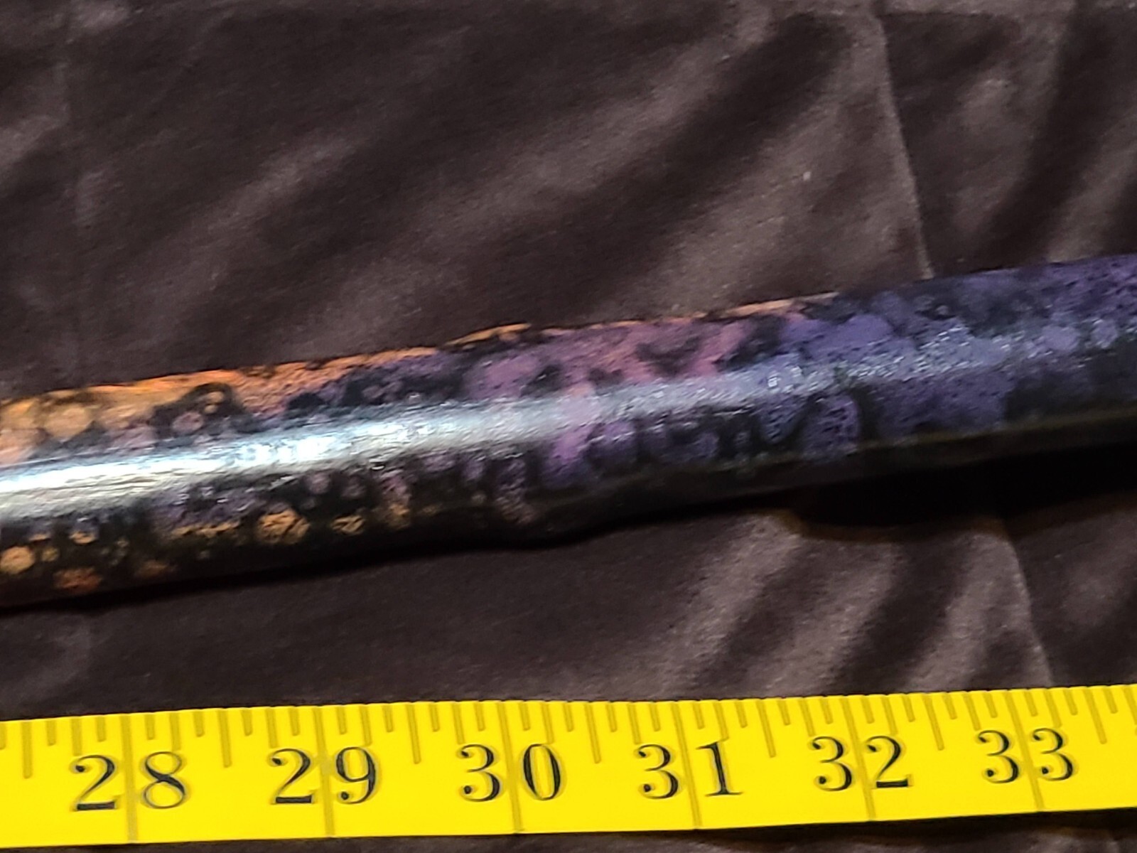 46 Hand Crafted Elm Wood Walking Stick/Staff PURPLE/ORANGE/BLK-GLOW IN DARK TOP