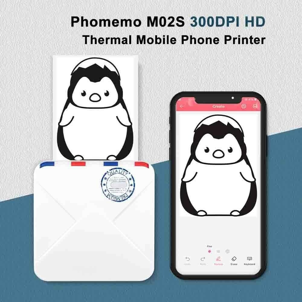 Phomemo Pocket Thermal Photo Printer 300dpi Bluetooth Wireless M02S Label Maker