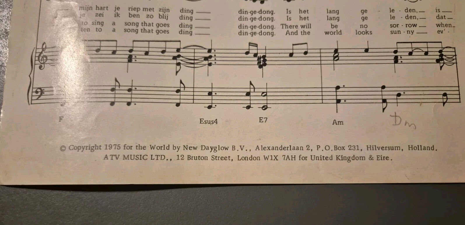 как выглядит SHEET MUSIC - DINGE DONG - TEACH IN - 1975 фото