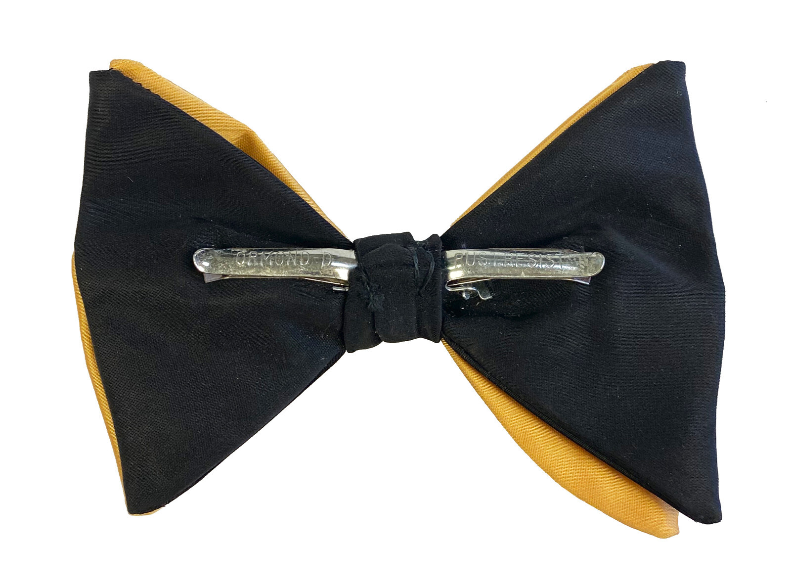 Vintage Gold Black Satin Bow Tie 1970s Oversized Large Butterfly Clip On