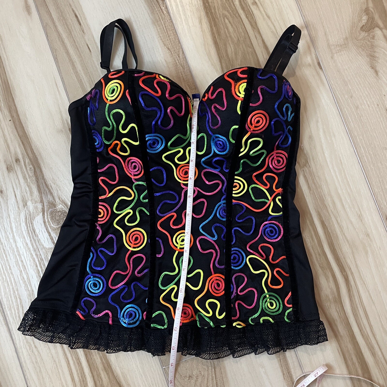 как выглядит Just One Black Corset With Multicolor Design And Zip Up Back Size Large фото