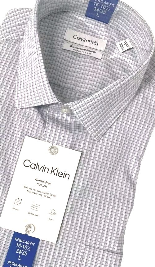 как выглядит CALVIN KLEIN Men s Wrinkle Free Stretch Dress Shirt Regular Fit LARGE White/Blue фото