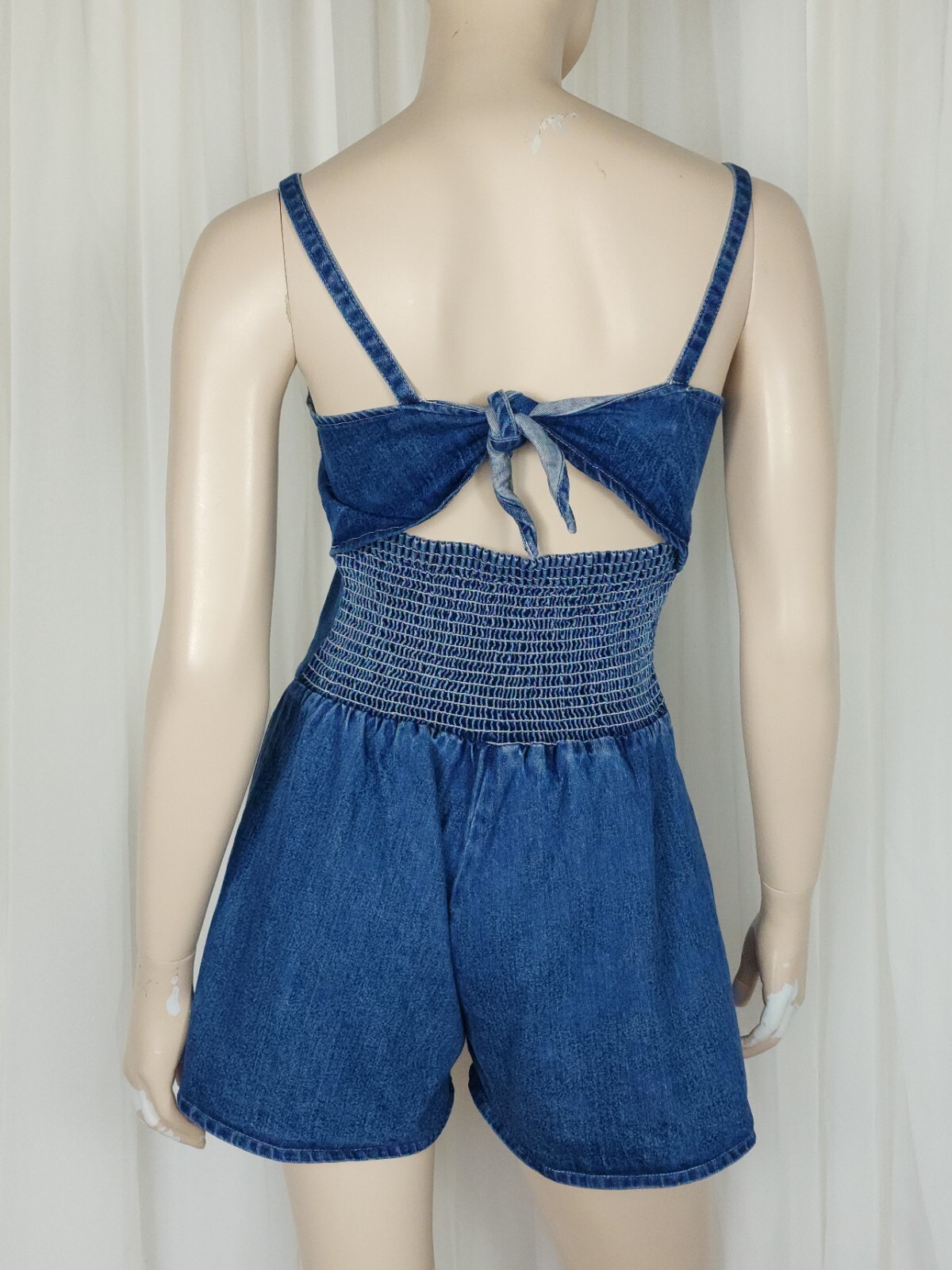 как выглядит Vtg 80s denim wide leg shorts romper blue XS/S фото