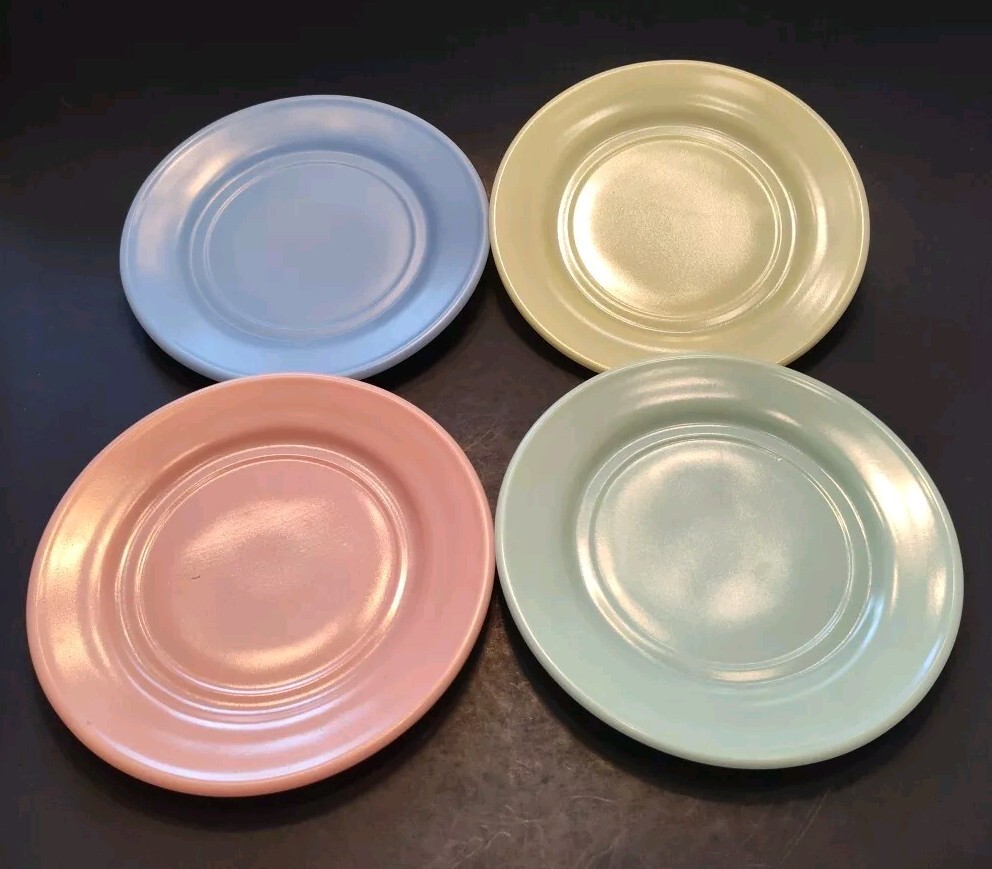 • 4x Hazel Atlas Little Hostess Moderntone Pastel Dishes Milk Glass 6" plates