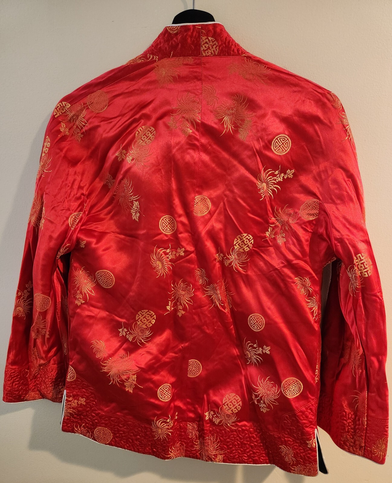 Vintage S Kimono Jacket Asian Collar Silk Reversible Red Black Great Condition