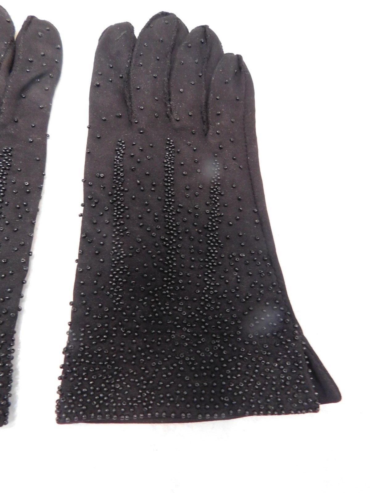 DESIGNER LADIES BLACK COTTON BEADED DRESS GLOVES UNLINED SIZE 6