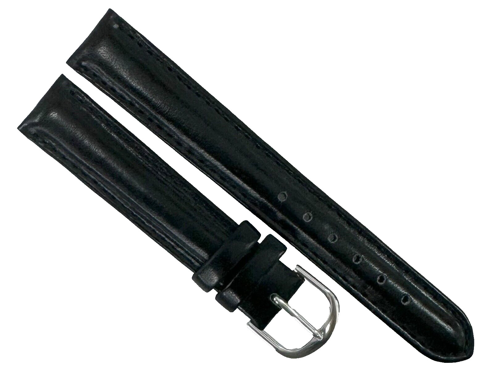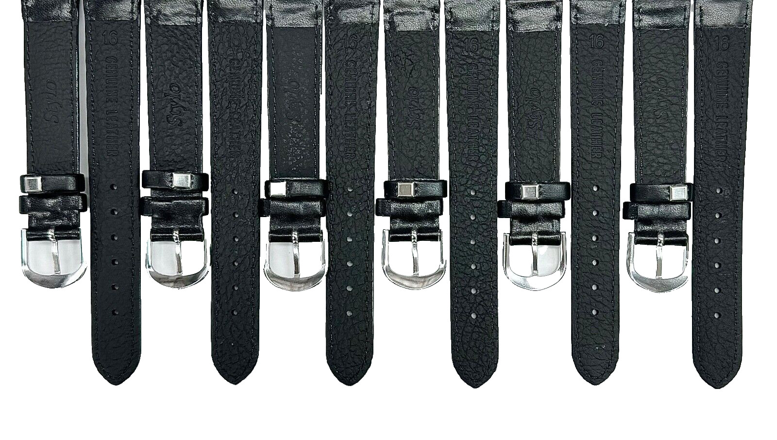 Lot of 6 Watch Bands Plain Black with Stitches Genuine Leather Padded 16mm