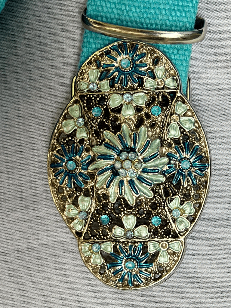 Beautiful Enamel and crystal Belt Buckle on a Wide Turquoise Belt - size 11 39