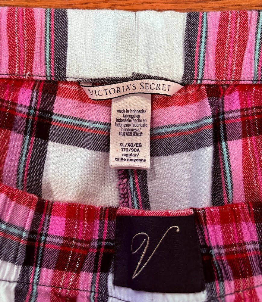 как выглядит Victorias Secret PJ Set Plaid Flannel Pants and Black Tank Top Size XL фото