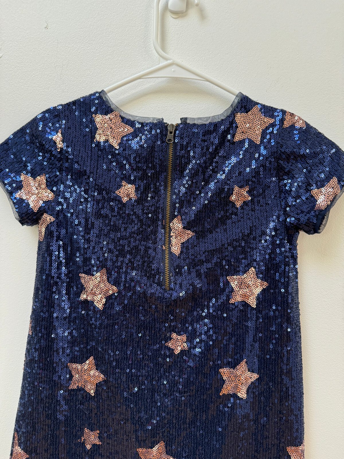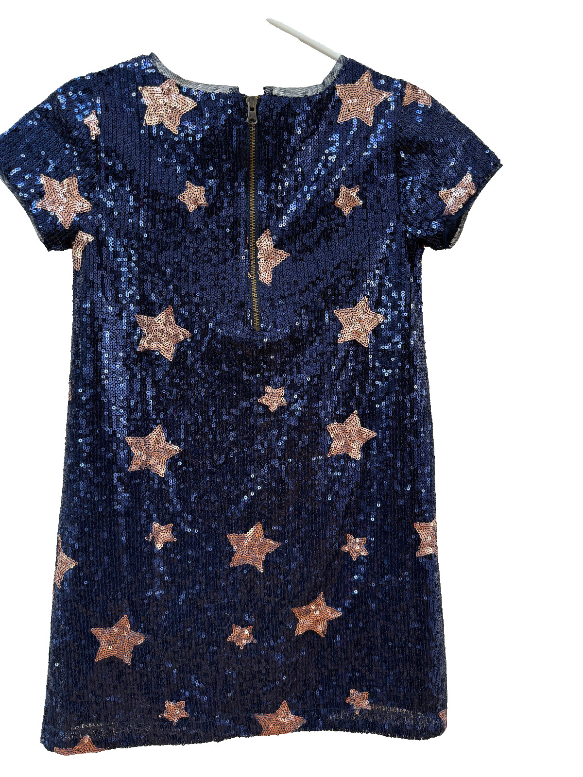 Gap Kids Girls Dress Size S/R Navy Blue Gold Stars Sequence Back Zipper Short Sl