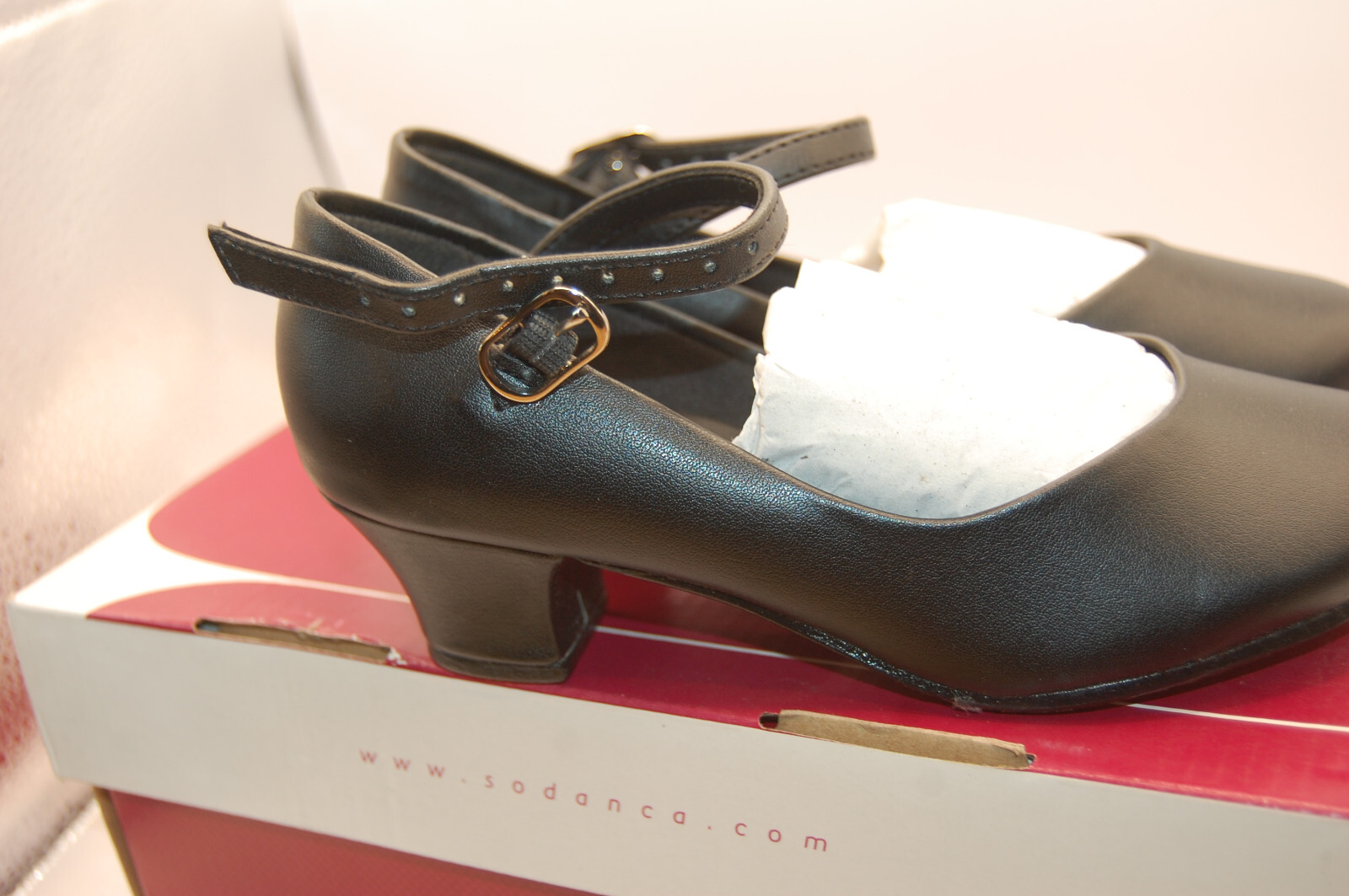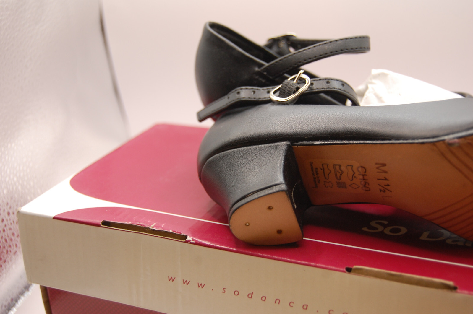 NIB So Danca Celine CH50 M 1.5 Heel Character Shoe Leather Sole 1.5 L Black