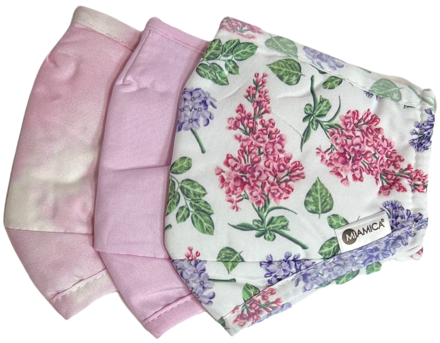 Miamica Reusable Adult Face Masks 3-pk Washable Fabric Straps Adjust Floral Pink