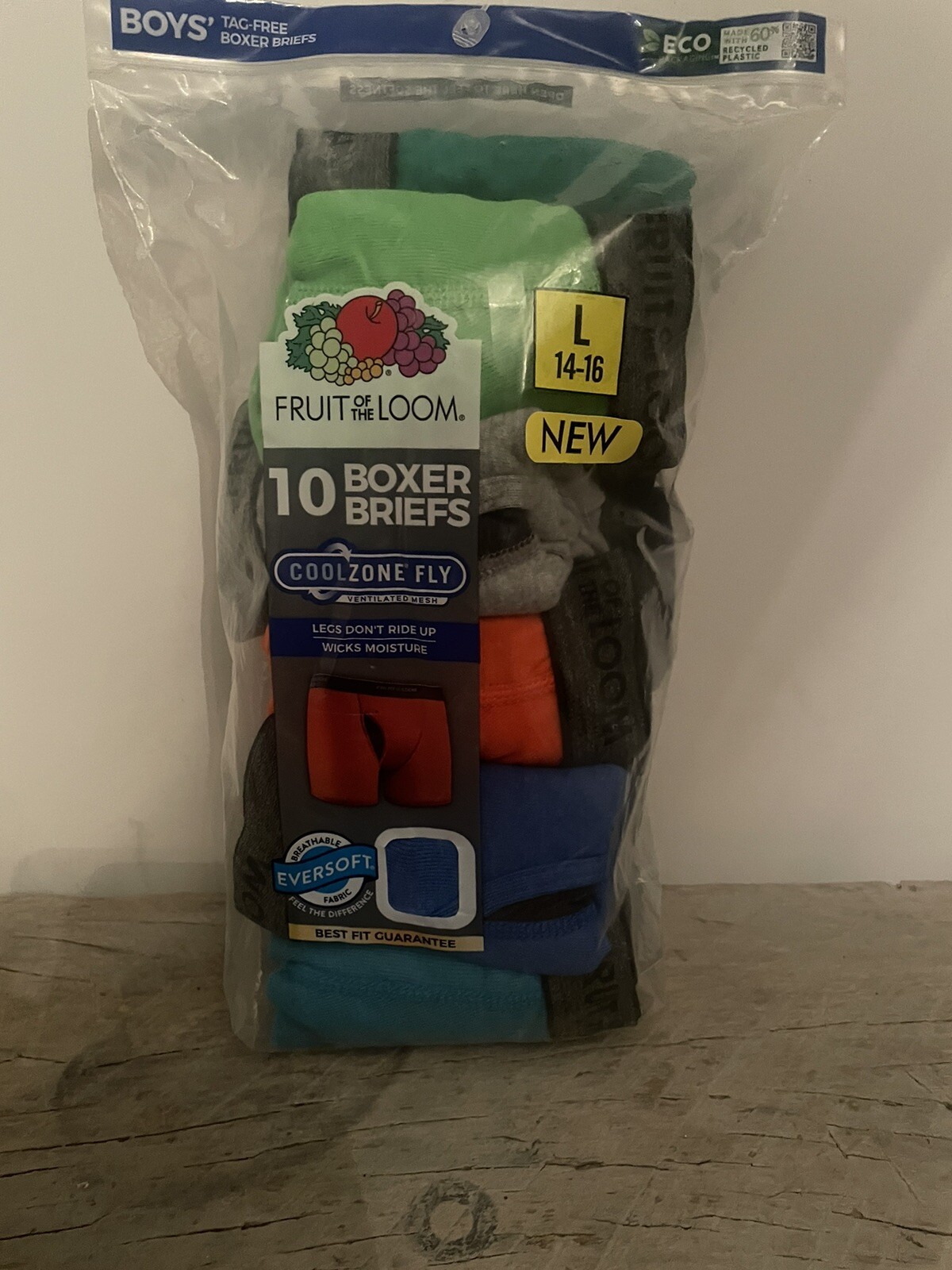 Fruit Of The Loom 10 Pack Boxer Briefs Cool Zone Fly Boys Size L 14-16