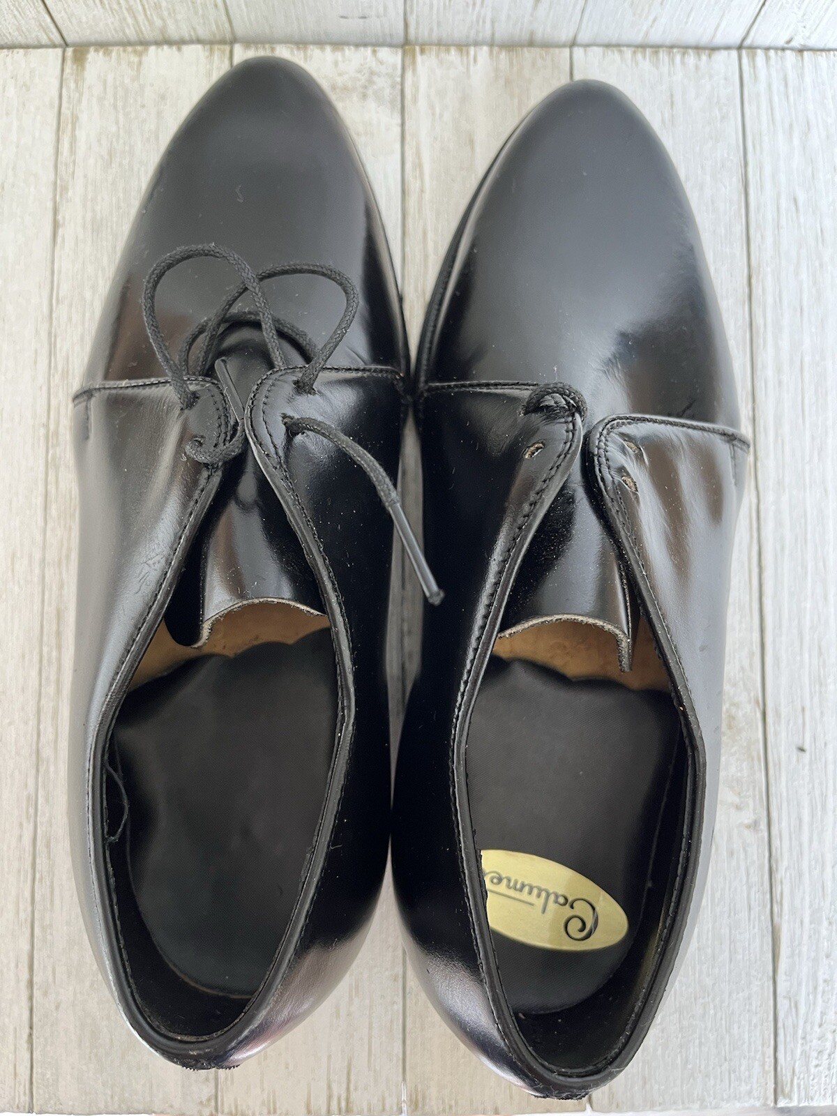 как выглядит Vintage Youth Boys Black Leather Dress Shoes Size 3 - Calumet NOS 50s-60s фото