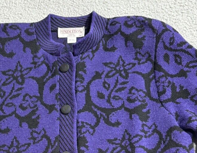 Sophisticates Pendleton Womens Cardigan Sweater Floral Purple Vintage Wool Blend
