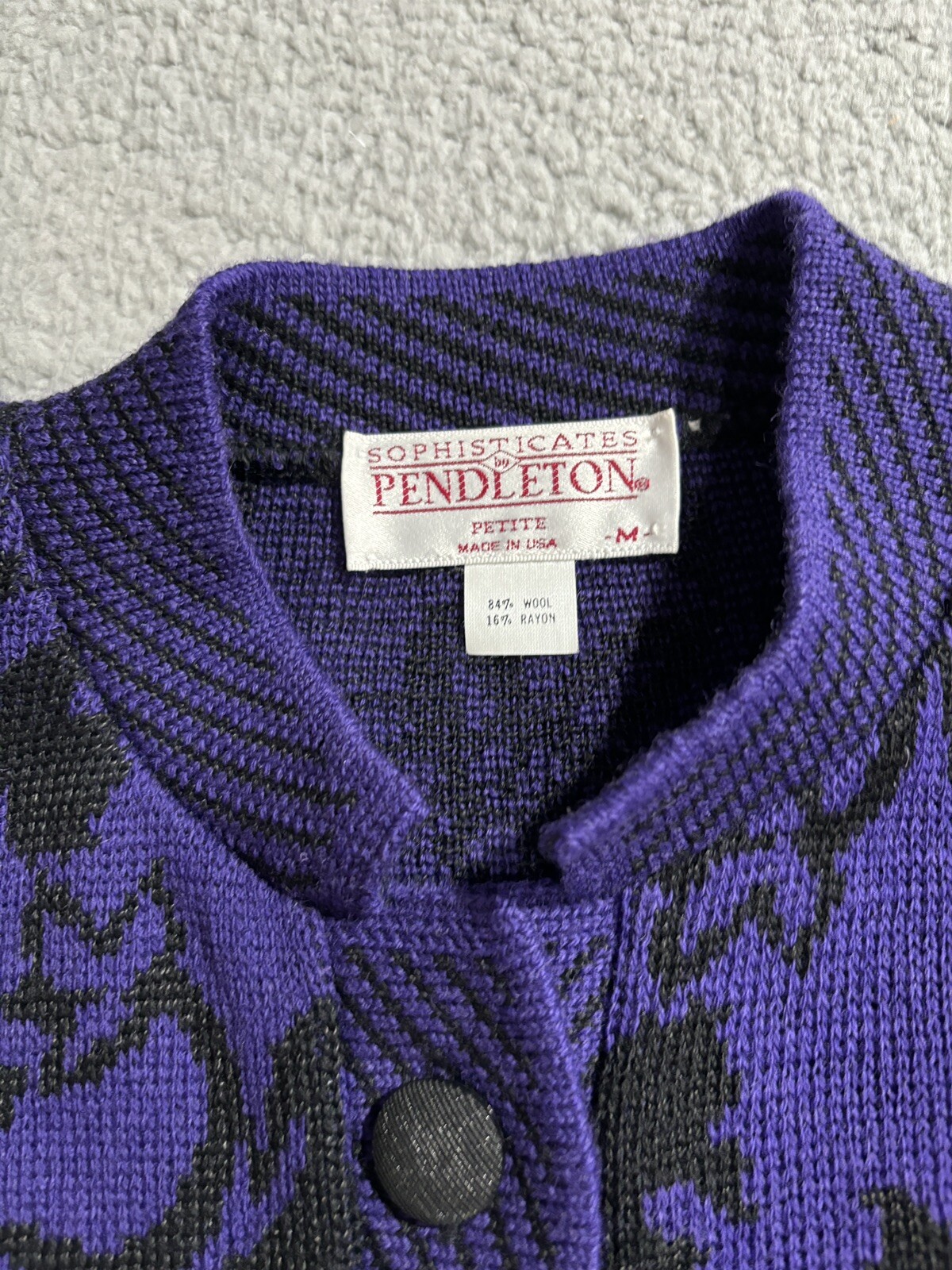 как выглядит Sophisticates Pendleton Womens Cardigan Sweater Floral Purple Vintage Wool Blend фото