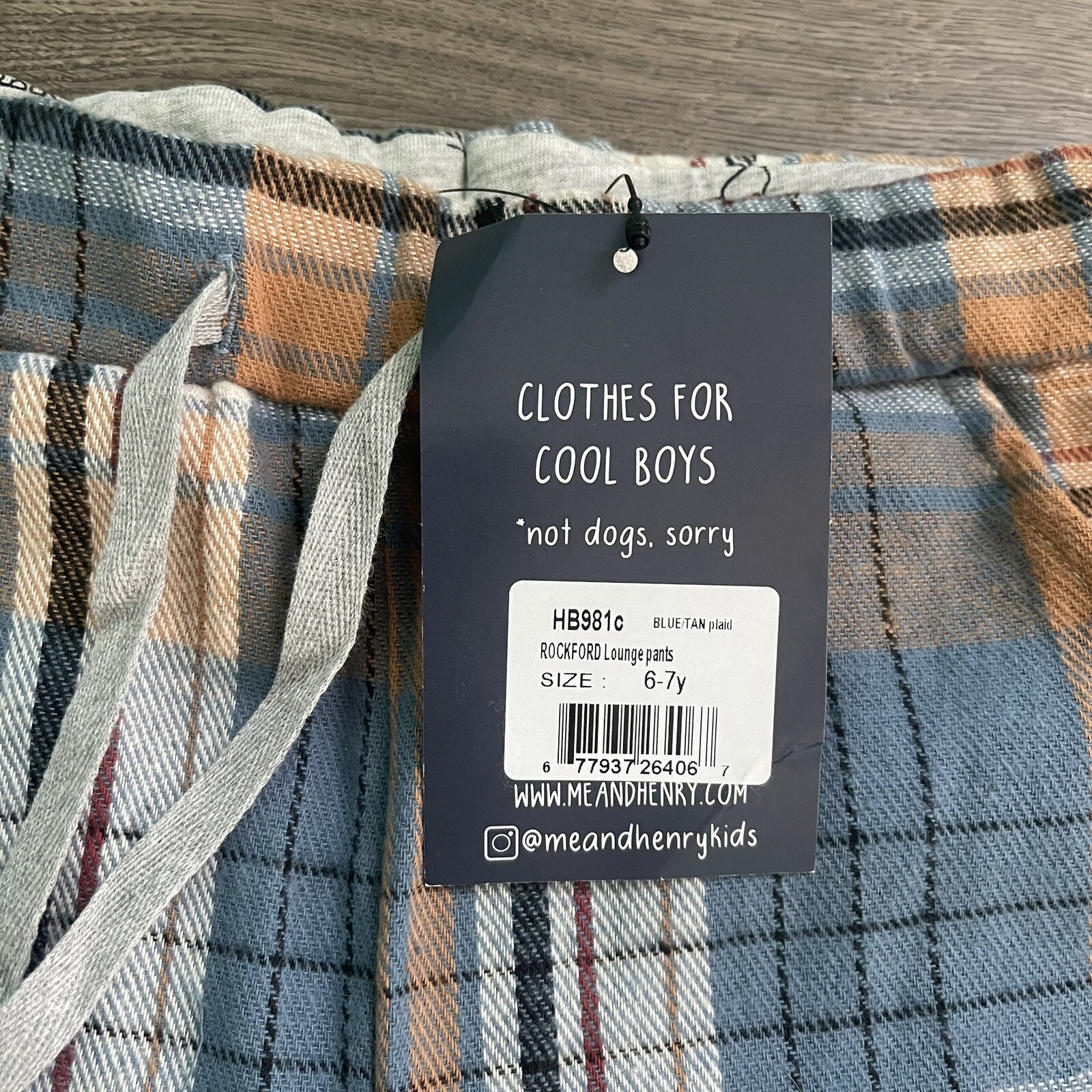 NWT Me Henry Boys 6/7 Rockford Blue Tan Plaid Lounge Pants